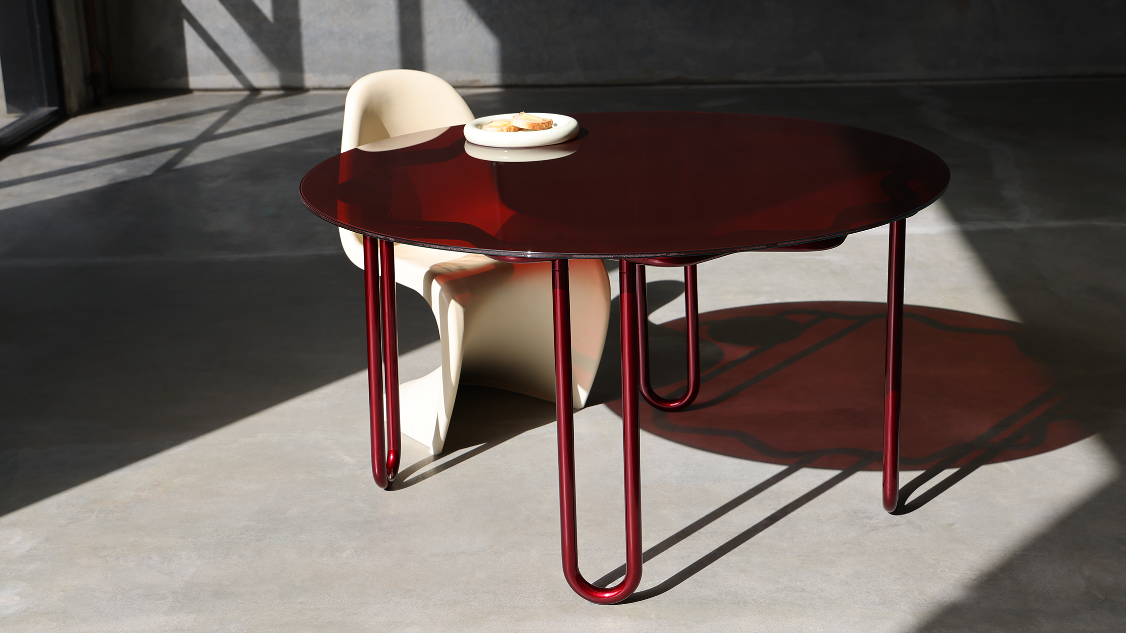 The Yonder table by TUBULAA beautifully captures the balance between boldness and subtlety, striking a perfect harmony between attention-grabbing design and refined elegance. Crafted from tubular steel and glass, the table’s distinctive wavy shape viewed through rich coloured glass gives it a dynamic, sculptural presence that brings character and energy to any space.